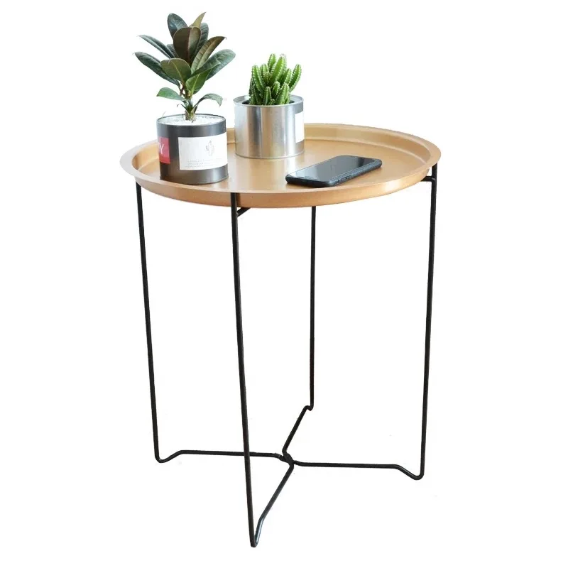 .Pictures of Nordic Golden Black Wrought IronTray Small Table Simple sofa edge wrought iron tray table coffee folding small round table