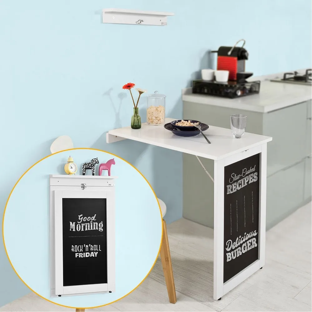 SoBuy White Folding Wall-Mounted Drop-Leaf Table, Kitchen & Dining Desk with Blackboard FWT20-W